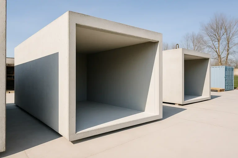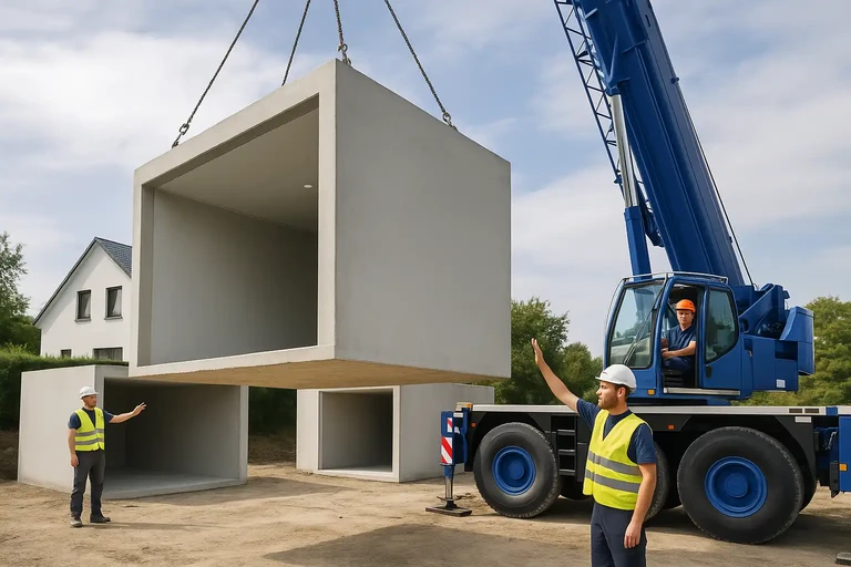 Vyrábíme z kvalitních železobetonových dílců, které už z výroby obsahují vše podstatné – pevnost, odolnost i chytré detaily. Hotový modul vám přivezeme, osadíme jeřábem a za pár hodin parkujete. Celý proces je rychlý, bez zbytečných výkopů a zdržení. A pokud chcete garáž využít i jinak – jako dílnu, sklad nebo prostor s průjezdem – přizpůsobíme vše přesně vašemu zadání.